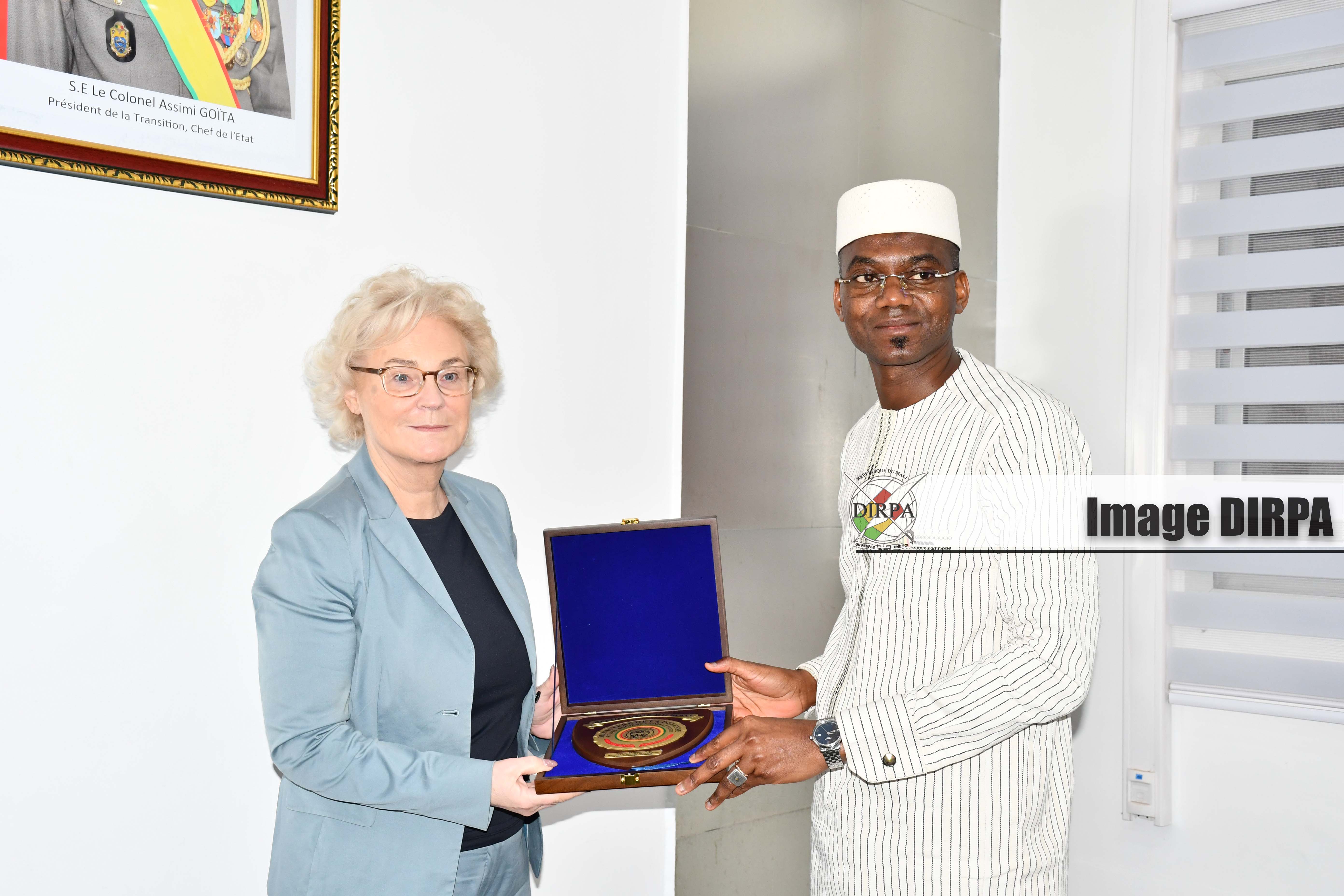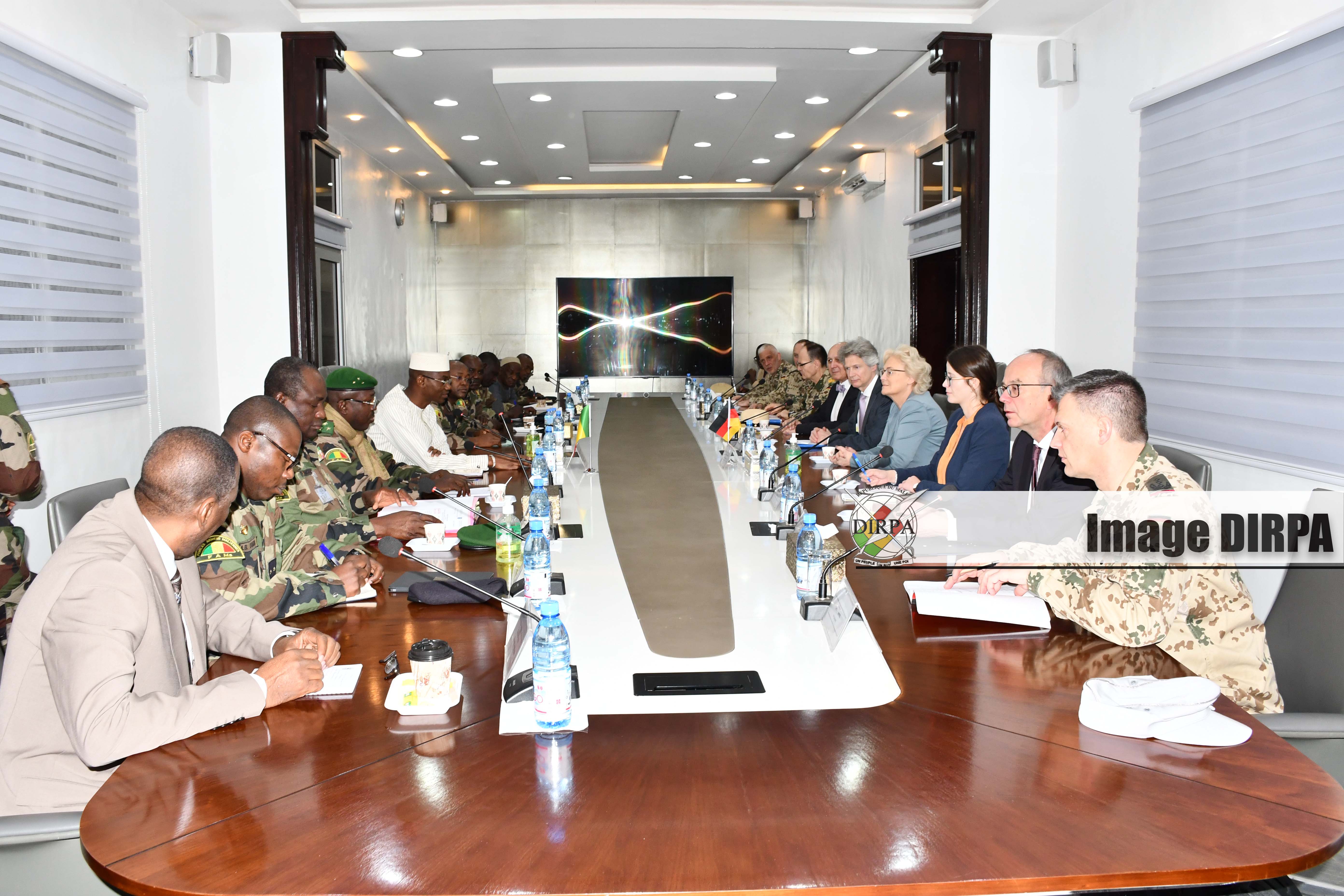 Le ministre de la Défense et des Anciens Combattants, le Colonel Sadio CAMARA, quant à lui, a remercié la République Fédérale d’Allemagne à travers son ministre de la Défense pour cette visite qui marque la vitalité bilatérale entre nos deux pays. Le ministre Camara a rassuré que la volonté des autorités de la transition est de faire en sorte que les élections puissent se tenir dans des bonnes conditions. Selon le Colonel Sadio CAMARA, cette visite a permis d’éclaircir certains points comme quoi le Mali est disposé à travailler avec tous les Etats tant que la souveraineté du Mali est preservée.