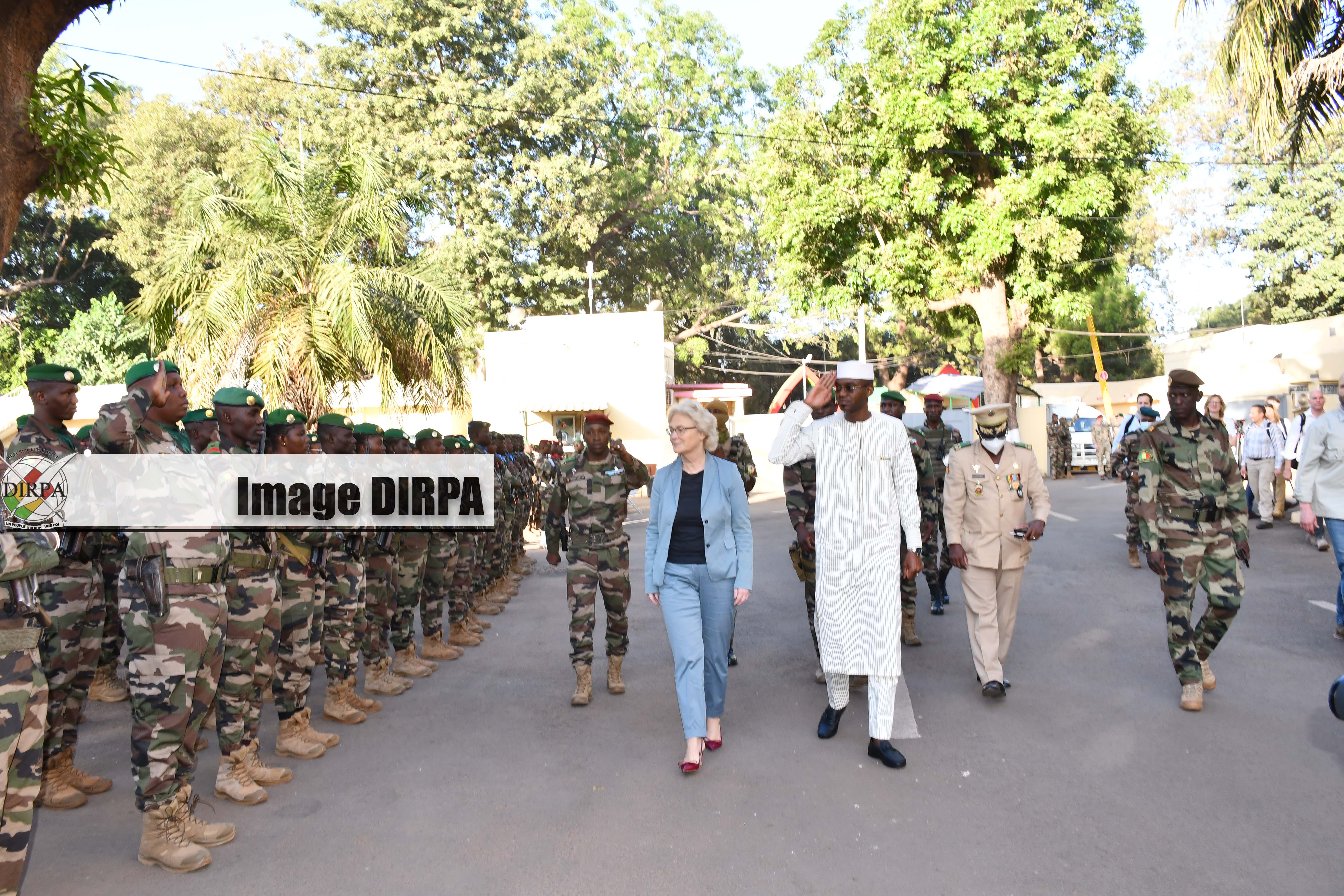 L’objectif de cette visite de la ministre allemande de la Défense, Madame Christine Anelle LAMBRECH, était de réaffirmer une fois de plus l’engagement de son pays auprès du Mali mais aussi de la coopération bilatérale entre les deux pays. Elle fait suite à la visite au contingent Allemand déployé au sein de la MINUSMA qui compte environ 1100 soldats sur le territoire malien.